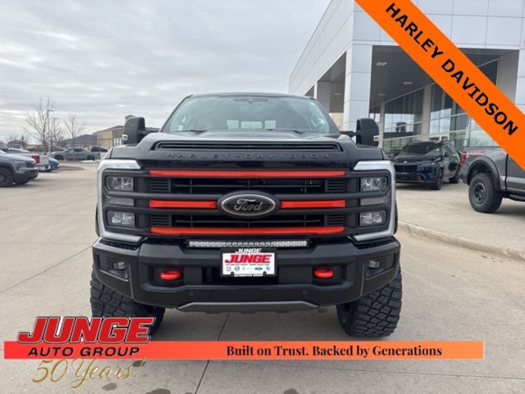 2026 Agate Black Metallic Ford F-250SD **NAVIGATION/GPS**, **LEATHER**, **DIESEL**, **CREW CAB**, **4WD**, 4WD, 4-Way Adjustable Headrests, 6" Ebony Black Angular Running Boards, Black Appearance Package, Black Painted Front Grille Surround, Body Color Front & Rear Bumpers, Ebony Black Painted Mirror Caps, F-250 >10K GVWR Package, Ford Connectivity Package (1-Year Included), Head-Up Display, High Capacity 11.6" Axle Upgrade Package, Internet access capable: 5G Modem - Ford Connectivity Package, Lane Departure Warning System, Lariat Premium Package, Lariat Ultimate Package, Navigation system: Connected Navigation, Order Code 608A, Power-Deployable Running Boards, Power-Sliding Rear-Window w/Defrost, Privacy Glass, Pro Trailer Backup Assist, Pro Trailer Hitch Assist, Radio: B&O Unleashed Sound System by Bang & Olufsen, Rear Wheel Well Liners (Pre-Installed), SiriusXM w/360L, SYNC 4 w/Enhanced Voice Recognition, Tailgate Step & Handle, Tough Bed Spray-In Bedliner, Twin Panel Power Moonroof, Wheels: 20" Ebony Black High Gloss, 4-Wheel Disc Brakes, 410 Amp Dual Alternators, 8 Speakers, ABS brakes, Adaptive Cruise Control w/Stop-and-Go, Adjustable pedals, Air Conditioning, Alloy wheels, AM/FM radio: SiriusXM with 360L, Auto High-beam Headlights, Auto-dimming Rear-View mirror, Automatic High Beam, Automatic temperature control, BLIS w/Cross-Traffic Alert, Brake assist, Bumpers: chrome, Compass, Delay-off headlights, Driver door bin, Driver vanity mirror, Dual AGM 68 AH Battery, Dual front impact airbags, Dual front side impact airbags, Electronic Stability Control, Emergency communication system: SYNC 4 911 Assist, Engine Block Heater, Flow-Through Console, Front & Rear Parking Sensors, Front ActiveX Trimmed 40/Console/40 Seats, Front anti-roll bar, Front Bucket Seats, Front Center Armrest, Front dual zone A/C, Front fog lights, Front License Plate Bracket, Front reading lights, Fully automatic headlights, Garage door transmitter, Heated door mirrors, Heated front seats, Heated rear seats, Heated steering wheel, Illuminated entry, Lane-Keeping System, Low tire pressure warning, Memory seat, Outside temperature display, Overhead airbag, Overhead console, Panic alarm, Passenger door bin, Passenger vanity mirror, Pedal memory, Post-Collision Braking, Power door mirrors, Power driver seat, Power passenger seat, Power steering, Power windows, Pre-Collision Assist, Radio: B&O Sound System by Bang & Olufsen, Rain sensing wipers, Rear Parking Sensors, Rear reading lights, Rear seat center armrest, Rear step bumper, Rear window defroster, Remote keyless entry, SecuriCode Keyless Entry Keypad (Driver's Side), Security system, Speed control, Split folding rear seat, Steering wheel mounted audio controls, Tachometer, Telescoping steering wheel, Tilt steering wheel, Traction control, Trip computer, Turn signal indicator mirrors, Upfitter Switches (6), Variably intermittent wipers, Vehicle Integration System 2.0, Ventilated front seats, Wheels: 18" Bright Machined & Carbonized Gray Alum, HARLEY DAVIDSON EDITION, 4WD, 4-Way Adjustable Headrests, 6" Ebony Black Angular Running Boards, Black Appearance Package, Black Painted Front Grille Surround, Body Color Front & Rear Bumpers, Ebony Black Painted Mirror Caps, F-250 >10K GVWR Package, Ford Connectivity Package (1-Year Included), Head-Up Display, High Capacity 11.6" Axle Upgrade Package, Internet access capable: 5G Modem - Ford Connectivity Package, Lane Departure Warning System, Lariat Premium Package, Lariat Ultimate Package, Navigation system: Connected Navigation, Order Code 608A, Power-Deployable Running Boards, Power-Sliding Rear-Window w/Defrost, Privacy Glass, Pro Trailer Backup Assist, Pro Trailer Hitch Assist, Radio: B&O Unleashed Sound System by Bang & Olufsen, Rear Wheel Well Liners (Pre-Installed), SiriusXM w/360L, SYNC 4 w/Enhanced Voice Recognition, Tailgate Step & Handle, Tough Bed Spray-In Bedliner, Twin Panel Power Moonroof, Wheels: 20" Ebony Black High Gloss.